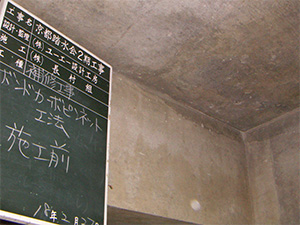 打放コンクリートのひび割れ箇所をエポキシ樹脂で注入後コンクリート化粧仕上げを施した工法です。